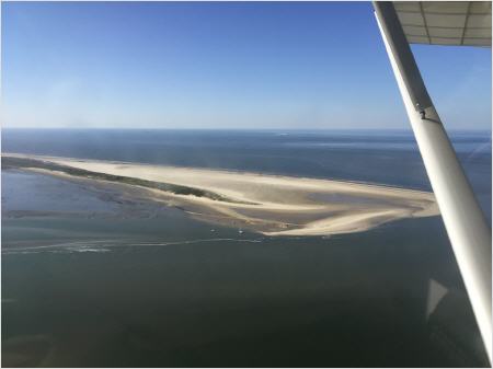 Es ist ein gigantischer Flug über das Watt über Pelworm, an Sankt Peter Orting vorbei nach Süden über Bremerhaven und Wilhelmshaven raus auf die Insel Wangerooge, vorbei an der ganzen Inselkette bis Borkum, wo wir Mittagessen wollten und natürlich auch tanken.